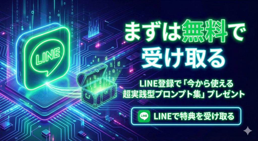 まずは下のボタンから無料の『超実践型プロンプト集』をお受け取りください。